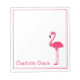 This fun notepad features an adorable pink flamingo on a white background. Personalize with your choice of name or special text.