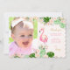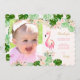 You partied and played the Flamingo way – and she had a great birthday! Let your friends and family know how much you appreciate them coming to celebrate her special day with you. Insert your own photo, and thank them in island style. Hand painted watercolor flowers and jungle leaves surround the photo and text, with a handprinted watercolor flamingo crowned with flowers. White with jungle leaves in greens on the reverse.