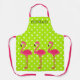 This cute apron features tropical pink flamingos on a background of bright lime green and white polka dots with matching pink straps. Personalize with your choice of name or special text.