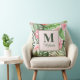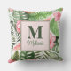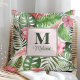 Tropical Pink Flowers and Monstera Monogram Throw Pillow