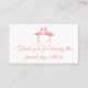 Add some fun to your wedding or next party with this cute pink flamingos in love thank you escort place card. Pink flamingo escort cards are perfect for your * summer, beach, hawaiian or tropical wedding, bridal shower, engagement party, rehearsal dinner * businesses * fundraisers and charities * holidays * personal use * parties - anniversary, birthday, retirement, graduations, etc. Thanking your guests will never go out of fashion with this cute pink flamingos card. Please scroll down to view other wedding and party gifts and stationery products you may enjoy.