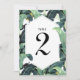 Glamorous banana leaves adorn this modern wedding table number card. Enter our shop for coordinating items: