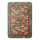 Green tropical leaves and red ginger plants on an ivory geometric pattern on a copper background, this bath mat is bordered with palm tree fronds and is a perfect accent to your home bath decor. MATCHING items in our collection.