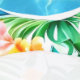 This vibrant large round beach towel features a captivating design that mimics a tropical pool float. The floatie is adorned with an array of lush green palm leaves and colorful tropical flowers in shades of pink, red, yellow, and orange, creating a lively and exotic atmosphere. The center of the towel showcases a realistic image of shimmering blue pool water, adding a refreshing and inviting touch. This whimsical beach towel is perfect for anyone who loves the tropical aesthetic and enjoys spending time by the pool or at the beach. It is ideal for those who want to bring a touch of paradise to their outdoor relaxation, making it a great purchase for beachgoers, pool enthusiasts, and anyone looking to add a splash of color and fun to their summer accessories.