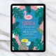 Tropical Pool Party Pink Girl 1st Birthday Invitation