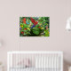 A beautiful tropical rainforest poster with flowers, butterflies, foliage, and a red macaw parrot. Relive that great tropical vacation while viewing rainforest animals.