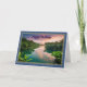 This man's birthday card showcases a breathtaking tropical scene at sunset. The image features a serene river winding through lush, vibrant greenery, with tall palm trees and various tropical plants lining the water’s edge. The sky is ablaze with warm shades of orange, pink, and purple as the sun sets in the background, casting a soft, golden reflection on the tranquil water. The card is framed with an ornate gold border against a deep blue background, giving it a luxurious and elegant feel. The text "Happy Birthday" is boldly displayed in a stylish font at the top center, adding a personal touch to the card.