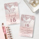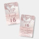 VIP passes. Tropical Rose gold glitter ombre script Sweet 16 VIP design.