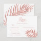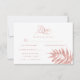 Simple and classic, this rose gold RSVP card has elegant script typography, a tropical leaf in one corner, and a clean white background, with a rose gold tropical palm leaf on the back. Find the rest of the wedding suite in the collection.