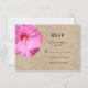 A bright pink hibiscus flower accents this response card on a beach sand background, making it perfect for the beach, tropical, destination, Hawaiian or summertime wedding. This coordinates perfectly with the Tropical Wedding Invitation on beach sand.