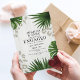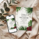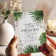 Celebrate the future Mr & Mrs with this bold and beautiful tropical engagement invitation. Featuring rich green palm leaves, a striking red hibiscus flower, and soft leopard print accents, it's the perfect blend of exotic flair and modern glam.