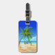 This tropical sandy beach illustration with a palm tree, swimming suits, and chair can be personalized with your name. The name template is set in a popular blue font, and it can be modified in the Edit Menu. It's a fun design for someone who loves the beach.
