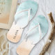 Personalized flip flops / jandals with watercolor beach scene. Both flip flops have a tropical sandy beach with gorgeous clear ocean waves lapping the shoreline. The left flip flop is printed with your name. Perfect for summer vacation, destination wedding welcome bags and bachelorette weekends.