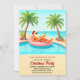 Bring the holiday heat with this festive tropical Christmas invitation featuring Santa lounging on a pink float under palm trees wrapped in string lights. With vibrant ocean views, wrapped gifts by the pool, and Santa sipping a cocktail in red Hawaiian swim trunks and a lei, this design captures the perfect blend of beach vibes and holiday cheer. Ideal for tropical Christmas parties, poolside celebrations, or festive holiday get-togethers with a warm twist.