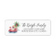 Tropical Santa Christmas Return Address label. This festive return address label features a relaxed Santa Claus lounging in a pink flamingo floaty, surrounded by tropical holiday details like a palm tree decorated with ornaments, gentle ocean waves, and a small island in the background. The charming watercolor artwork is placed on the left, while your name and address appear on the right in a mix of script and serif fonts, giving it a casual yet elegant feel. Perfect for adding a touch of surf and sand to your Christmas cards or holiday party invitations, this label is ideal for those living in tropical places like Florida, Hawaii, or the Bahamas—or anyone who loves a beachy holiday vibe.