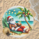Santa Claus in a festive scene capturing the vibrant details of a tropical beach setting.