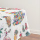 I am very pleased with this purchase. The quality is good, it is heavy and the image decorating it is brilliant and very eye-catching. When I first laid eyes on this tablecloth, still folded and in the transparent covering, it brought a smile to my face and I knew right away it was a good choice. A few days later my wife replaced our old tablecloth with this little gem and was quite satisfied. She noted that it is thick and fits the table very well with just enough hang over (although our dining table is extended by a traditional leaf which we keep in place even if we are not having guests over) and stays put instead of blowing all over the place. The image decorating this tablecloth is brilliant and very eye-catching. It looks even better than it appeared online.