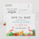 Tropical Save The Date | Hibiscus Floral Flamingo Announcement Postcard