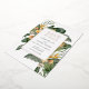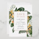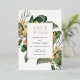 Foil pressed Wedding Save the Date for a tropical vibe. Featuring tropical orange flowers and lush greenery. Include your photo on the backside or delete and leave blank. Edit with your wording and select from three different foil colors including gold, silver and rose gold.