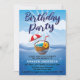 30th Birthday Party Invitation. Tropical themed, design features of ocean and floating coconut drink.