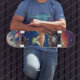 This skateboard features the artwork I once did of a tropical scene done on a sheet of Masonite.
