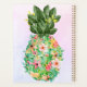 This day planner features a tropical pineapple featuring tropical island flowers, starfish and shells with a watercolor background of pink and blues.