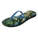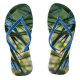 Designed by Nature, these flip flops of Tropical Shades of green, blue and yellow with contrasting light and dark bands are created from looking through palm leaves and catching hints of blue sky and sunlit foliage. Feel the Tropical Vibes in these bright colorful fun flip flops that are truly unique.