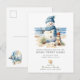 This festive tropical Christmas moving announcement card features a cute snowman on the beach. The card is perfect for sending to friends and family during the holiday season to let them know about your new address while also incorporating your love of the tropics. The overall design is festive and unique, and the card is sure to put a smile on the faces of your loved ones.