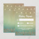 Tropical Starfish and Seashell Wedding RSVP Cards - feature string lights, printed gold seashells and starfish with a beautiful beach themed background in shades of blue, green, tan and hints of other colors. See the full matching collection below in this design.
