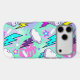 A Pattern Of Colorful Pastel Comic Tropical Leaves And Lighting Bolts iPhone 17 Pro Max Case.
