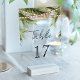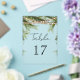 Elegant tropical theme wedding table number featuring modern typography.