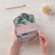 Tropical style all in one wedding invitation with tear off RSVP. The design is simple and elegant and features palm trees, banana leaves and botanical leaves. Colours are minty green and dusty rose pink