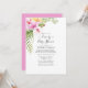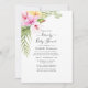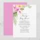 Watercolor summer drive through bridal or baby shower invitation featuring orange and pink hibiscus.