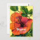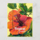 Watercolor design by artist Sacha Grossel of tropical orange hibiscus. Bright vibrant colors or orange and green. Themes of tropical flora flower art