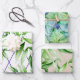 Exotic tropical watercolor leaves pattern wrapping paper in three different styles.