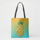 The Tropical Summer Pineapple Tote is a cute bag to carry everything from groceries to your beach and pool gear! The design features a modern pineapple design on an orange-yellow to turquoise blended background. Customize the design as desired. Also makes a great gift!
