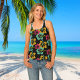 Women's All-Over Print Racerback Tank Top, Black Piping, S