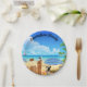 Tropical sunny summer beach scene monogrammed Paper Plates.