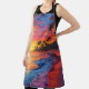Great color and even though I ordered the kid size, it covers well enough to use during the holidays. I am not a big woman and prefer a shorter apron. I stand 5"6" and the length of the garment goes to mid-thigh. The tie straps fit well at my waist and even though there is no neck strap adjustment, the opening is plenty big enough. I am happy with the size and fit. I am sharing my apron with my 10 year old grandson, too! The color is vibrant and looks good, as shown on the website. The stitching looks strong and reinforced. Photographed is front side and back side of the apron, reinforced straps and coloring. My phone camera may not be the best at showing the details.
