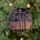 Say Merry Christmas in the Hawaiian Language with Mele Kalikimaka above a palm tree lined tropical island beach at sunset .