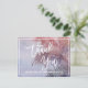 This tropical sunset thank you postcard is perfect for a destination or beach wedding. The design features a stunning pink, purple and blue watercolor sunset complete with a palm tree blowing in the breeze. Personalize the front of the card with a short message. Personalize the back with a longer thank you message. Alternatively, leave the thank you message template section on the back blank to hand write a thoughtful personalized note on each postcard after they arrive. These postcards can be used for the bridal shower, wedding, or any special event.