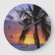 Tropical sunset with palm tree in foreground wall clock.