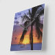 Tropical Sunset with Palm Tree Square Wall Clock