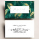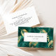 A business card design featuring a pattern of teal and gold jungle foliage on a teal faux foil background. Personalize it with your name and title in charcoal gray text in a white rectangle. Add your name, title and contact details on the reverse side.