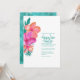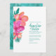 Tropical Teal Pink Coral Flower Wedding Invitation