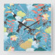 Tropical Texture With Toucans and Hummingbirds Square Wall Clock