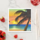 Birthday party napkins. Vintage colors palm tree silhouette and ocean waves on a sandy beach ai generated artwork.