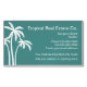 Business card magnets for a Realtor or real estate service designed in a tropical themed palm trees and modern organized layout with sea green background color that has that beach feel. Created for a Realtor, Broker, real estate Agent, or Agency.