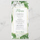Give you wedding an elegant touch and let the guests know what's on the menu with this tropical themed wedding menu feature palm leaves and white flowers.