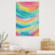 This vibrant abstract design captures the essence of a sun-drenched tropical paradise. Swirling waves of turquoise, pink, yellow, and green create a dynamic, layered composition reminiscent of colorful tide pools and shimmering ocean surfaces. Playful patterns of dots, zigzags, and organic shapes dance across the surface, evoking the diverse textures and life forms found in coral reefs. The warm, energetic color palette brings to mind lazy summer days, exotic vacations, and the mesmerizing beauty of nature’s most colorful ecosystems.